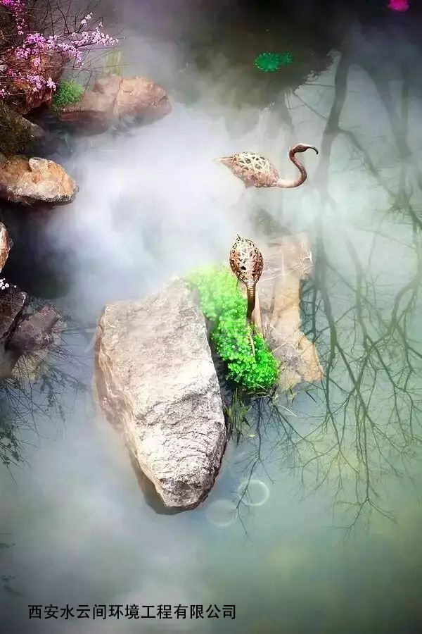 人造霧在通過高壓發(fā)生霧化,形成的精細霧粒能有效的降低周圍的溫度,常用來給景區(qū)降溫,因此也被人們稱為冷霧。水是所有景觀設(shè)計元素中最具吸引力的一種,在水景中加入冷無系統(tǒng),更能夠襯托景觀的靈動性,觀賞性。從自然界的烘托,自然韻味的營造,到建筑景觀的特殊創(chuàng)意設(shè)計,霧森處處體現(xiàn)著人類文化與自然景觀的融合。